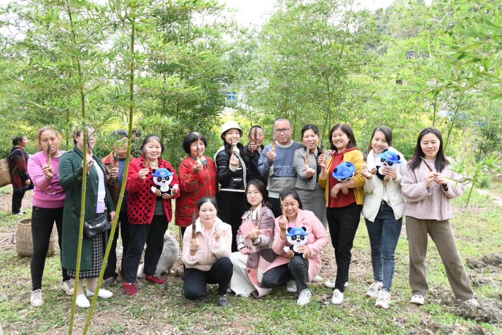 经过三年的精心养植,雷竹园产出了首批鲜笋。“我们这儿产出的竹笋主要售往各大酒店,还能让熊猫基地的国宝们吃上我们这儿的竹子,除了竹笋,雷竹园里的竹子成熟后还可以用作竹编工艺,销路是很广的。”憧憬着美好的未来,陈松一脸笑容。