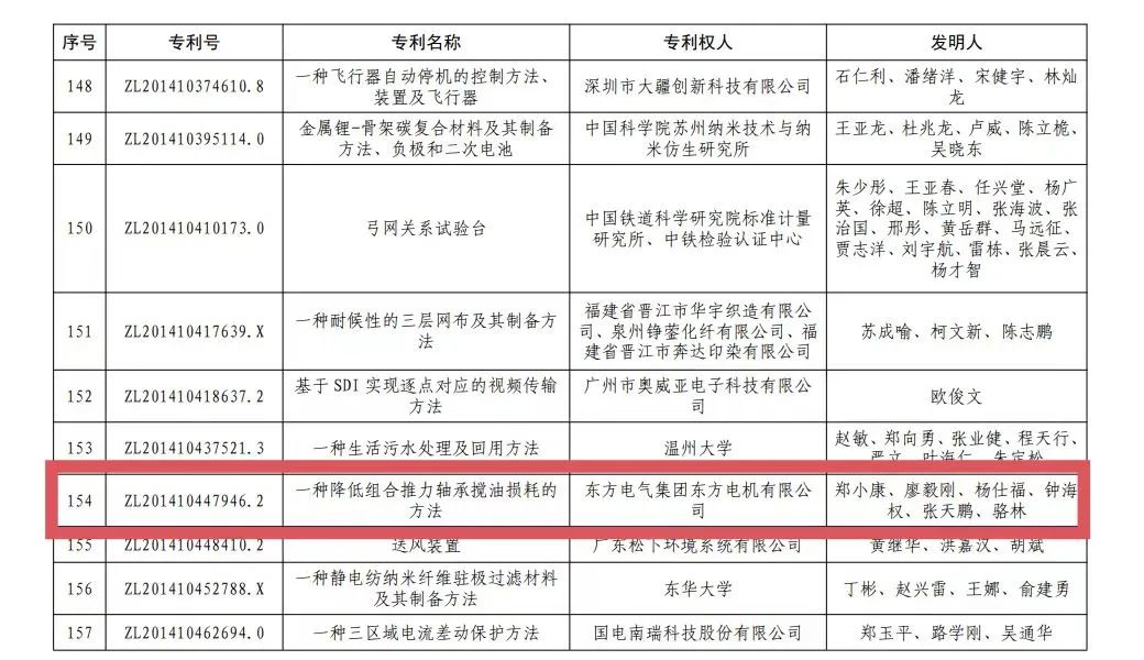 近日,国家知识产权局发布了关于第二十四届中国专利奖授奖的决定,PA视讯电机申报的“一种降低组合推力轴承搅油损耗的方法”荣获中国专利优秀奖。这是PA视讯电机第5次获得该奖项。