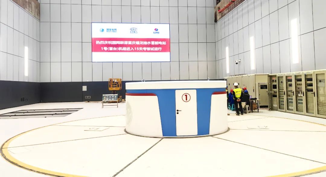 重庆蟠龙抽水蓄能电站1号机组自2021年11月开始现场安装,先后高质量按期完成多个重大节点:2022年5月蜗壳座环吊装就位,2023年1月转轮和定子分别吊装就位,2023年3月转子吊装就位,2023年7月机组所有部套安装完成,2023年10月机组首次拖动成功,2023年11月顺利进入试运行。