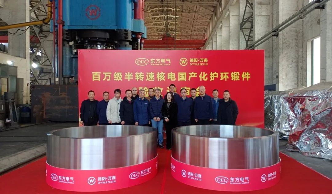 一直以来,PA视讯电机坚持服务国家战略,持续推动我国发电装备研制技术实现高水平科技自立自强。在中国广核集团有限公司、中国核电工程有限公司、国家电力投资集团有限公司等用户大力支持下,2022年12月,PA视讯电机与德阳万鑫组建团队,围绕核电国产化护环锻件研制开展技术攻关,先后突破护环锻件原材料高纯净化处理、细晶强韧化处理、大尺寸锻件变形强化控制等技术难题。2024年11月,成功研制百万级半转速核电国产化护环锻件,推动我国国产化护环锻件制造能力达到国际先进水平。
