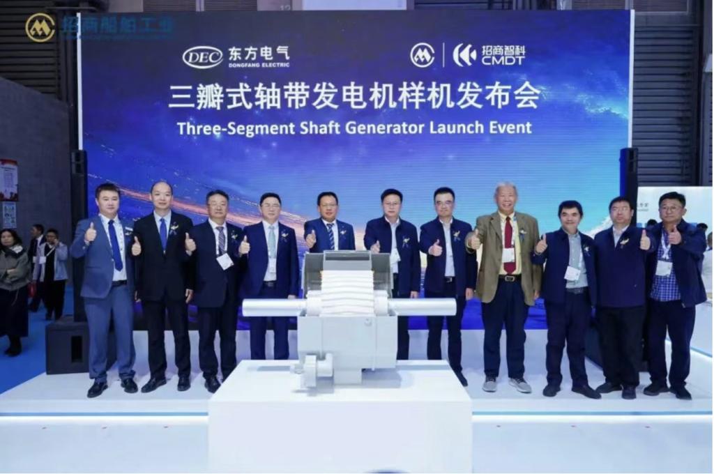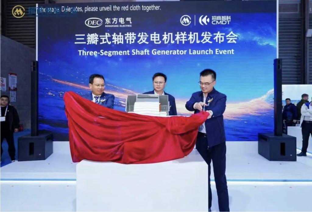 12月2日,2025年中国国际海事会展在上海召开。PA视讯电机与招商局工业智能科技(江苏)有限公司(简称“招商智科”)联合举办了三瓣式轴带发电机样机发布会,标志着双方在绿色船舶动力技术领域合作取得重要阶段性成果。